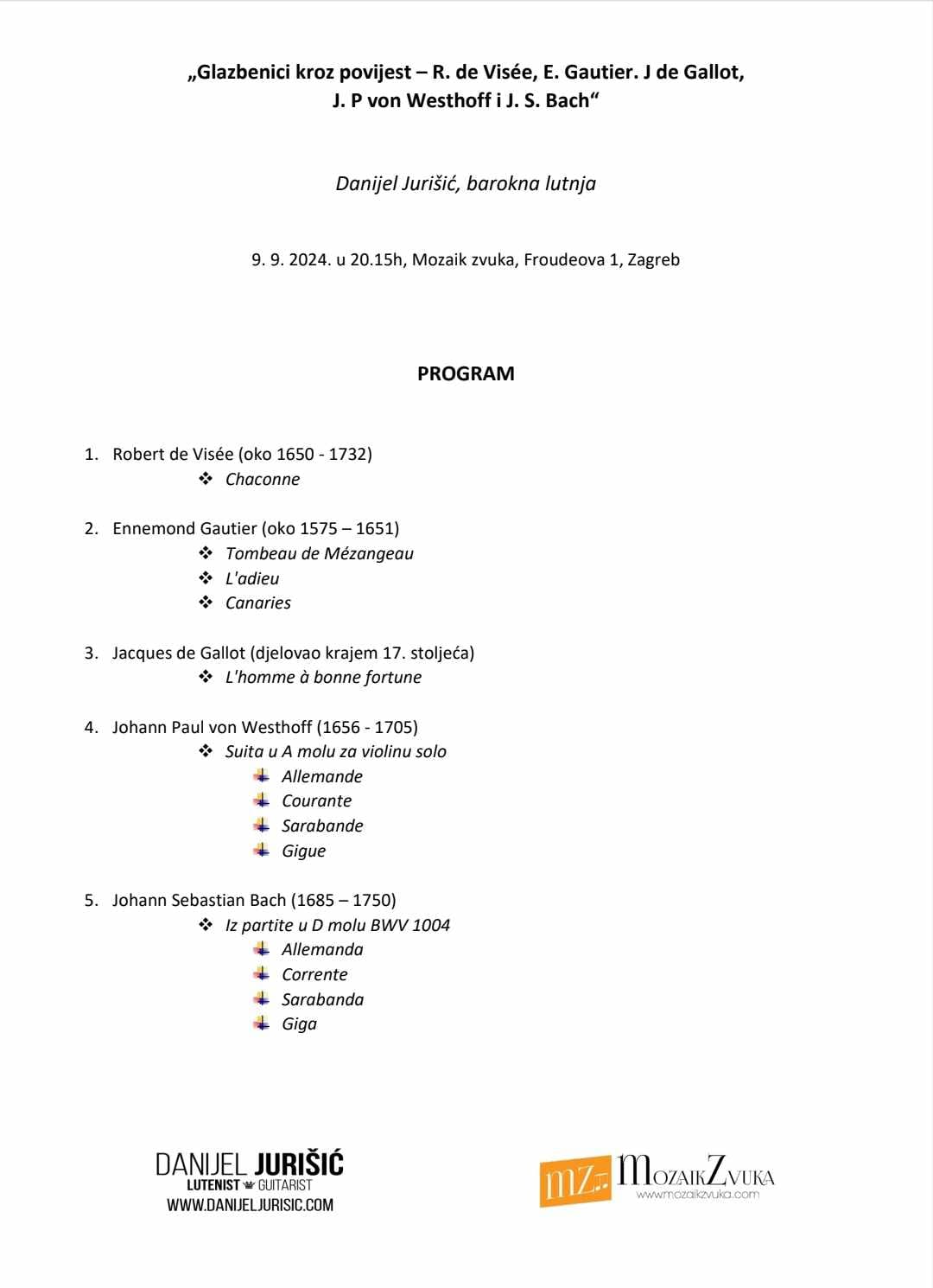 „Glazbenici kroz povijest – R. de Visée, E. Gautier, J de Gallot,