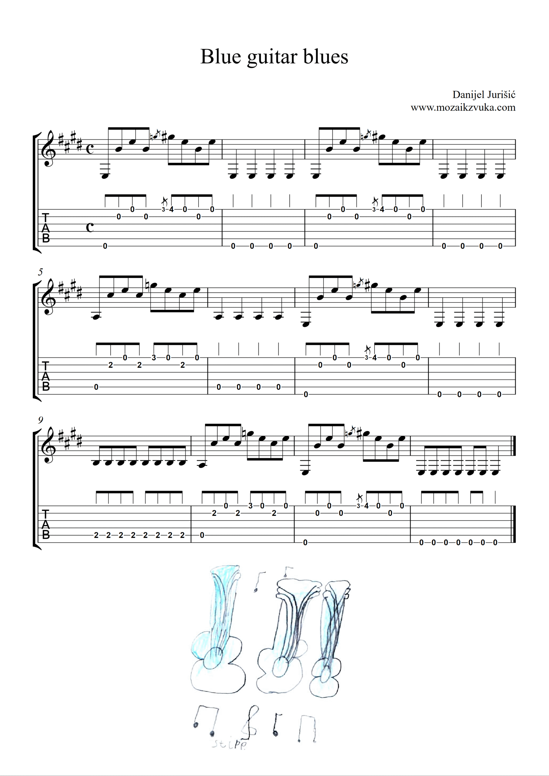 Donosimo Vam note i tablature jednostavnog bluesa za početnike. Note u kvalitetnom pdf. formatu možete preuzeti na našoj download stranici.